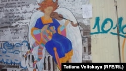 – Мы решили украшать эти замызганные дворики, парадные, двери – и туда пришли наши герои, Ангел и Лев. Рисуя их, мы применяем все, что изучаем – тут и композиция, и стенопись, и подбор колеров. Работа у нас командная, мы заранее договариваемся, кто красит волосы, кто шарф, кто лицо. Очень важен рисунок – у кого-то лучше получаются руки, у кого-то лица, у кого-то орнаменты – каждый выбирает, что ему по душе. Мы изучаем мозаики и эмали, и это тоже помогает – может, мы и к этому постепенно придем. Сюжет зависит от места, от нашего состояния.