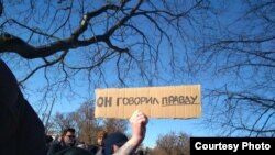 В Пскове активист Александр Максимов вышел с одиночным пикетом в центр Пскова. Он стоял с плакатом "День убийства Бориса Немцова. Эти пули в каждого из нас. Мы все помним и не простим".